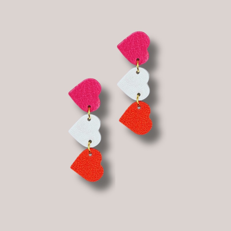 Pink, Red & White Heart Drop Earrings // Valentine’s, Hearts