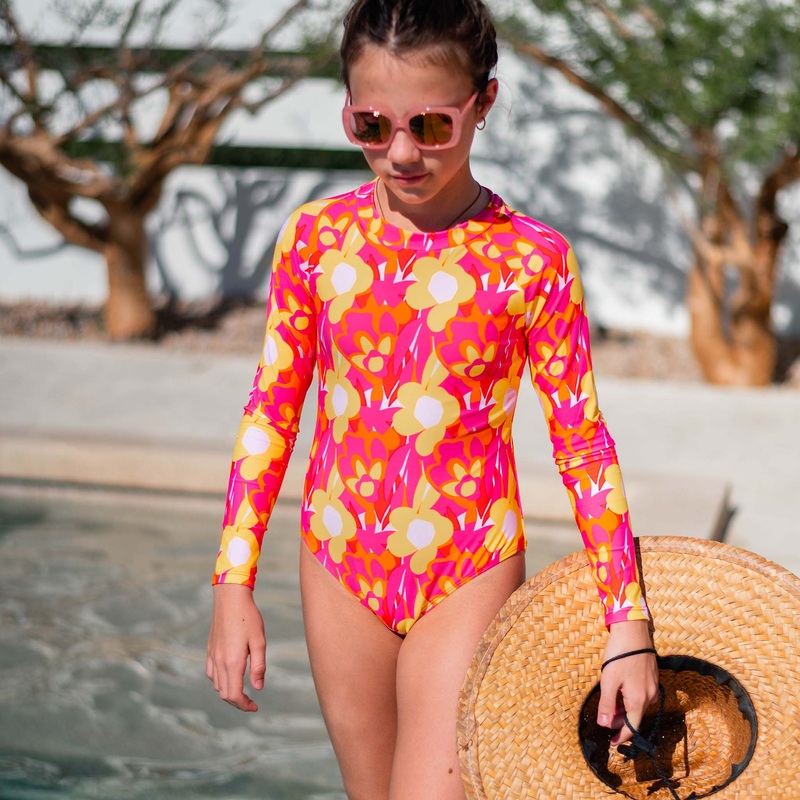 Catch those waves in style with the Pop of Sunshine Long Sleeve Surf Suit – the ultimate choice for surfer girls of any age! This children’s swimsuit is groundbreaking in more ways than one – with a bold floral design and UPF50+ sun protection, so you can worry less about harmful UV rays and more about making those summer memories.