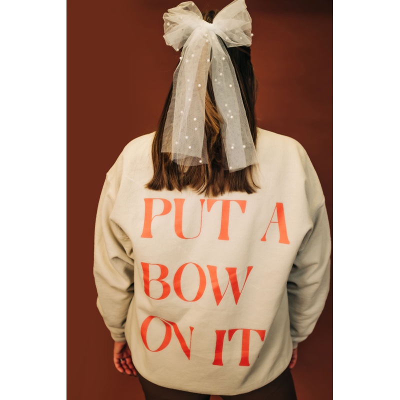 The Put A Bow On It sweater is made with cozy and super basic sweater that you are going to love! Embroidery on the front and printed on the back this sweater has all the luxury of our typical Gussy Up Collectibles. Inspo-- This sweater was inspired by two