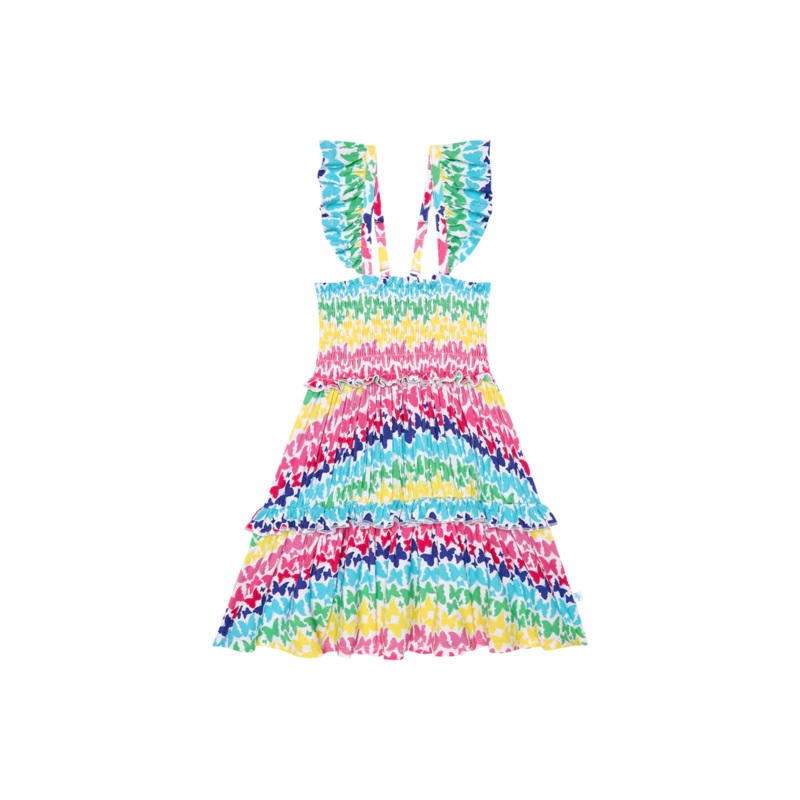 Rainbow Butterfly Smocked Flutter Sleeve Babydoll Dress