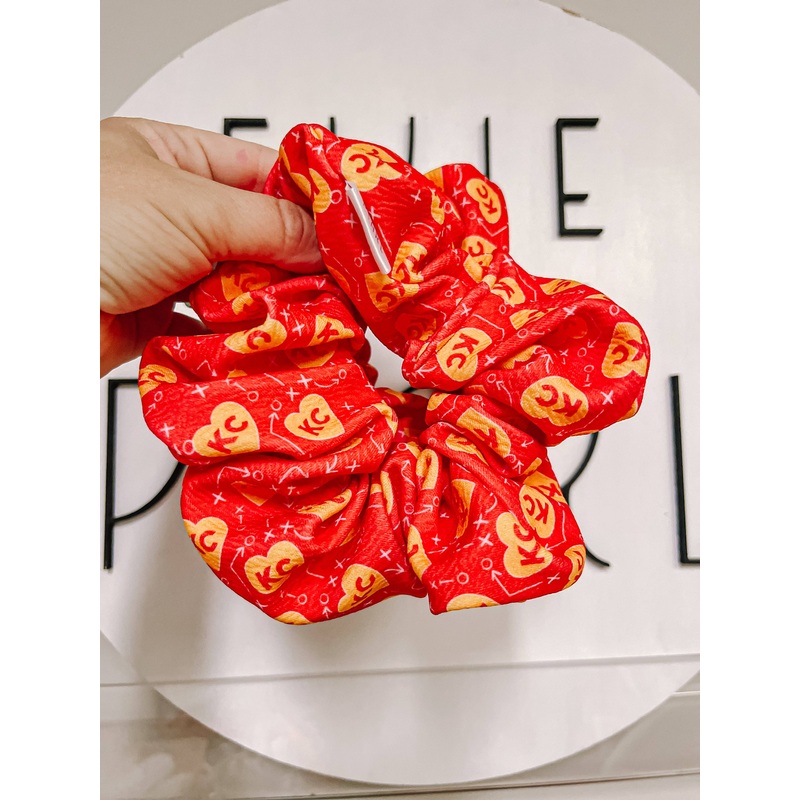 Kansas City Football Themed Handmade ScrunchieShow your Chiefs pride with our handmade Kansas City football-themed scrunchie. Designed for both girls and women, this scrunchie is perfect for adding a spirited touch to your game day outfit. Whether you’re celebrating Red Friday, attending a watch party, or cheering at Arrowhead Stadium, this scrunchie is your go-to accessory.Key Features:3 sizes: girls, regular & oversized Handmade with Excellence: Each scrunchie is carefully handcrafted, ensuring exceptional quality and attention to detail.Oversized Design: Our oversized scrunchie adds a fun and bold statement to any hairstyle, perfect for standing out in the crowd.