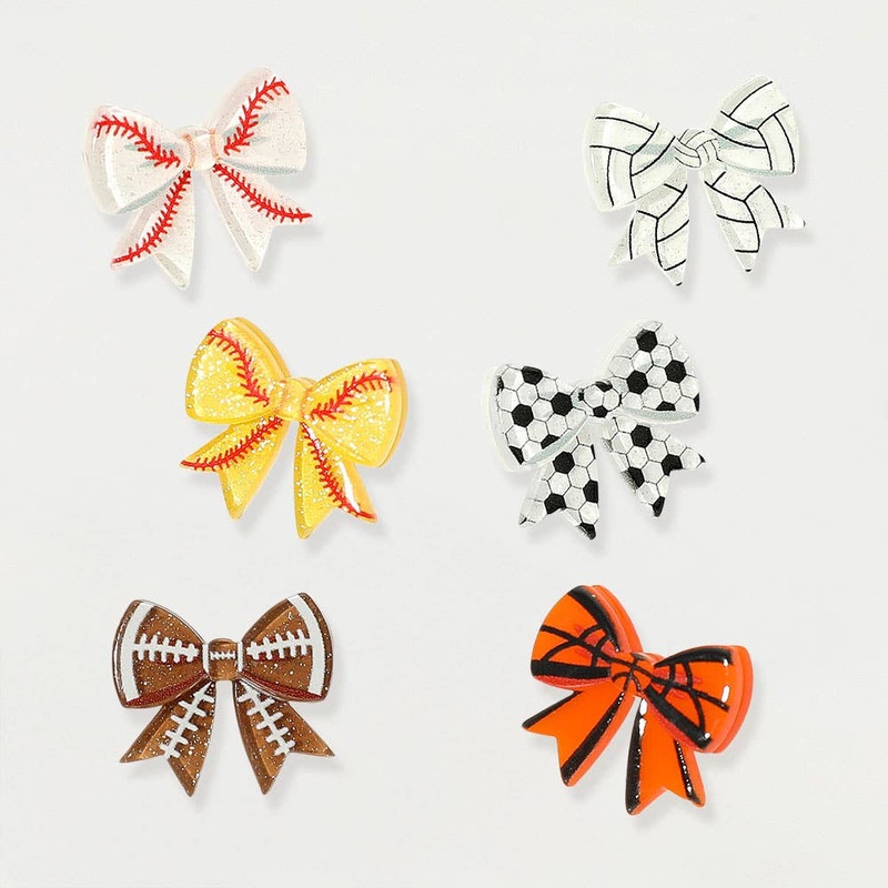 Size : 0.7″ X 0.7″Post BackAdd a playful touch to your outfit with these bow-shaped earrings featuring a fun sport ball pattern. Perfect for sports fans and casual wear, these earrings bring athletic flair and charm to your everyday style.Lead and Nickel Compliant