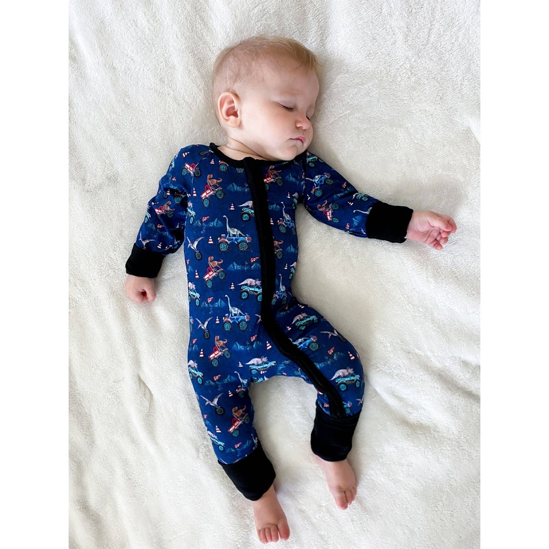 Unleash your little one’s wild side with our Rip & Rawr pajamas! Featuring dinosaurs and monster trucks, these buttery soft pajamas will ignite their imagination and keep them comfortable all night long. Perfect for parents looking to make bedtime more exciting for their kids! * Ultra-soft bamboo fabric * Hypoallergenic * Last 3x longer * Extra stretchy, yet durable for many wears. * Naturally temperature regulating which means it will keep your little one comfortable no matter the weather. * Tagless design is gentle on the most sensitive skin. * Double zipper for easy diaper changes! * Convertible mittens and foot guards protect your little one from scratching themselves, keep their feet warm, and allow extra room to grow! SIZING: This zippy fits true to size with a generous length for extended wear. If your little one is on the smaller side, we recommend sizing down.