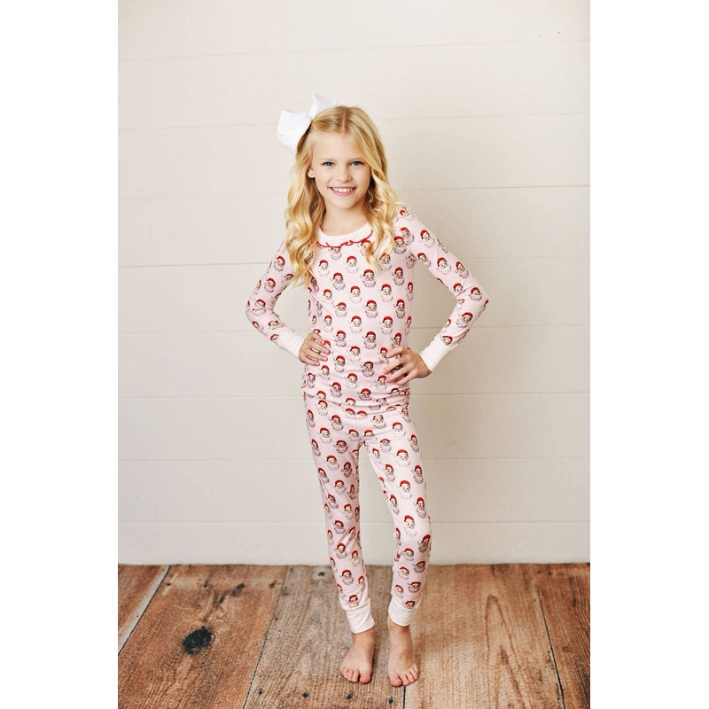 SWOON BABY GIRL HOLIDAY SANTA BABY BUTTERKNIT PINK 2PC CHRISTMAS PAJAMA SET, PERFECT FOR CHRISTMAS MORNING!Wrap your her up in holiday magic with our adorable Christmas pajamas for girls. Crafted from ultra-soft, butterknit fabric, these jammies promise comfort and warmth during those chilly winter nights. The playful design features cheerful santa print, making bedtime a festive affair. The set includes a long-sleeve top with a cute, coordinating pattern and elastic waistband pants for easy dressing and undressing. Perfect for holiday photos, cozy family gatherings, or simply dreaming of sugarplums, these pajamas are a wonderful way to celebrate the season. Available in a range of sizes to fit every little dreamer.CUSTOM HAND DRAWN SWOON EXCLUSIVE PRINTMODEL IS WEARING SIZE 7, TTS95% POLYESTER 5% SPANDEX