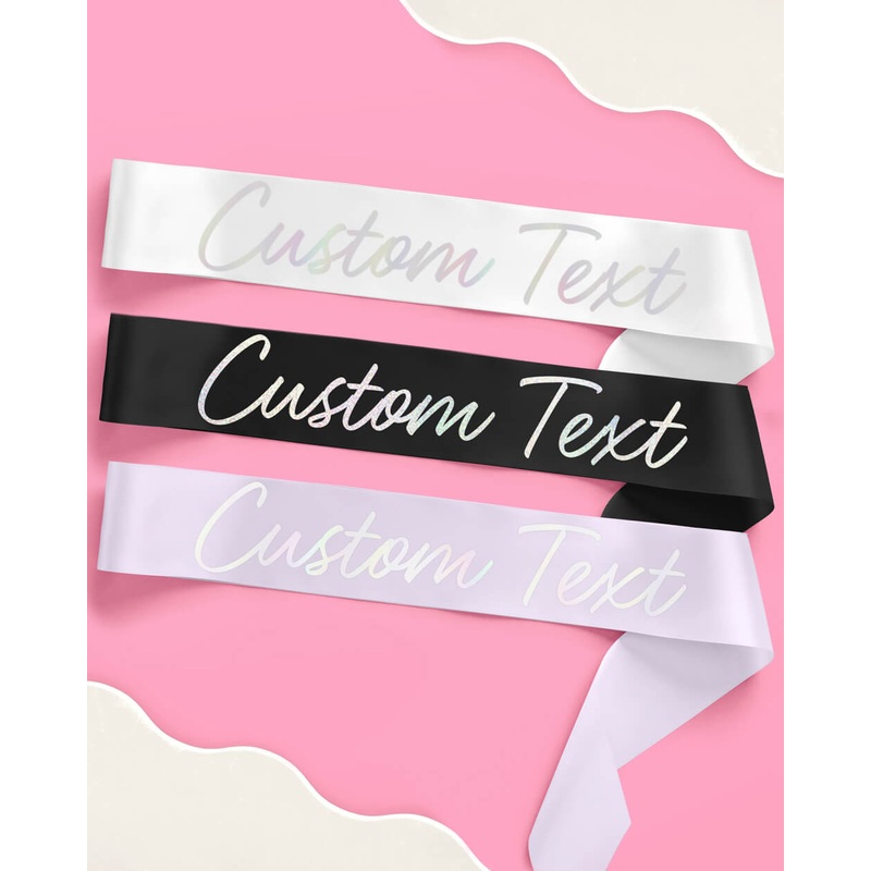 Make it personal. || See all font options here!Sash Measurements: 3" wide and 70" long total Each sash comes packaged with a silver pin If your logo is longer than 15 characters, we will automatically make the font a little skinnier to accommodate for the