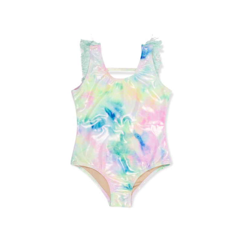 Shimmer Fringe Neon Tie Dye One Piece Swimsuit