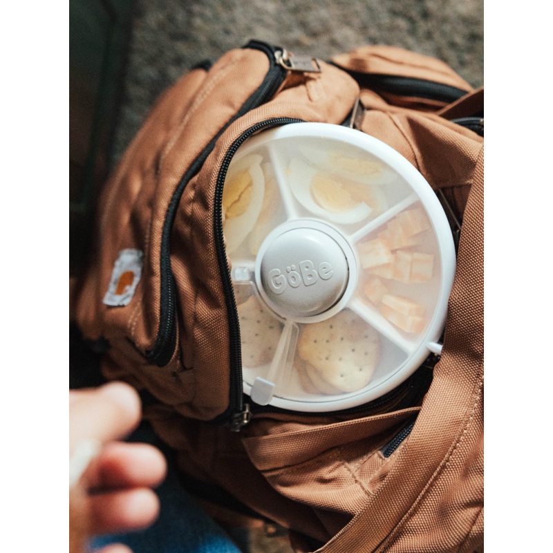 The GoBe Snack Spinner is the only spill resistant snack container that allows your child to choose between five different snacks at once! With the push of a button, your child can jump from snack-to-snack, all while reducing spills and mess! More snacking variety for them, less mess for you.