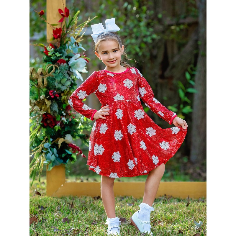 Twirl into the winter wonderland with our Snowflake Sequin Twirl Dress! Covered in shimmering sequins, this dress will make you feel like a snow princess. Perfect for holiday parties and special occasions!Accessories not included. Materials: 100% Polyester