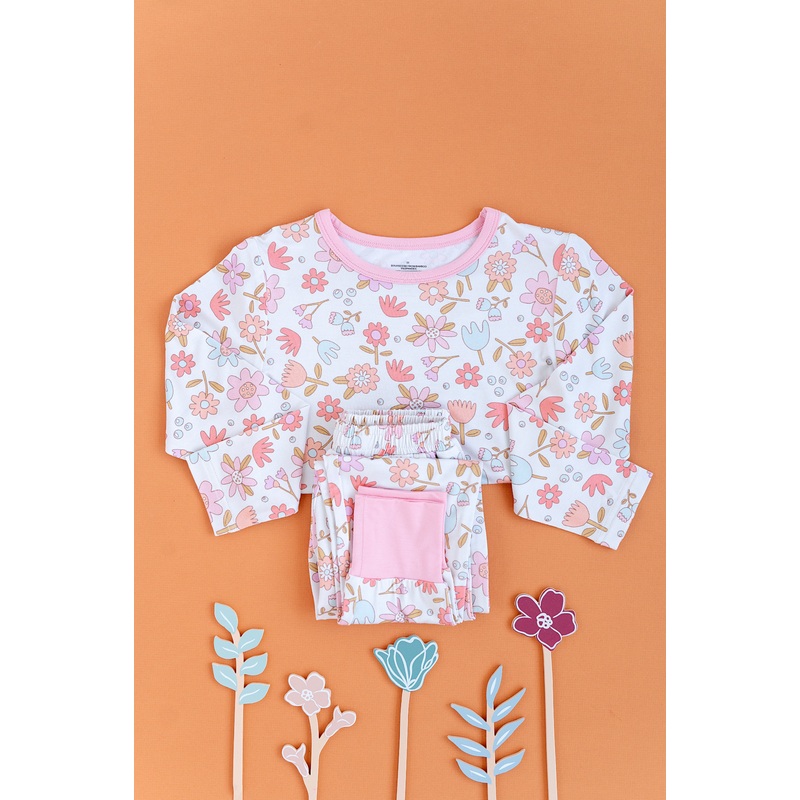 95% viscose from bamboo; 5% spandexButtery soft, stretchy bamboo viscosethatsgentle on sensitive or eczema-prone skinTaglessSnug fit in accordance with all CPSC safety regulations (our pajamas are never treated with flame-retardants or chemicals)Machine wa