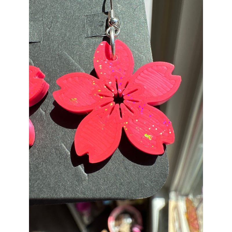 Add a touch of whimsy to any outfit with our Starry Sakura Earrings!The 3D printed holographic starry texture gives them a playful and unique look, while the 925 sterling silver or 18k gold plated earring hooks plus silicone backings ensure comfort and qua