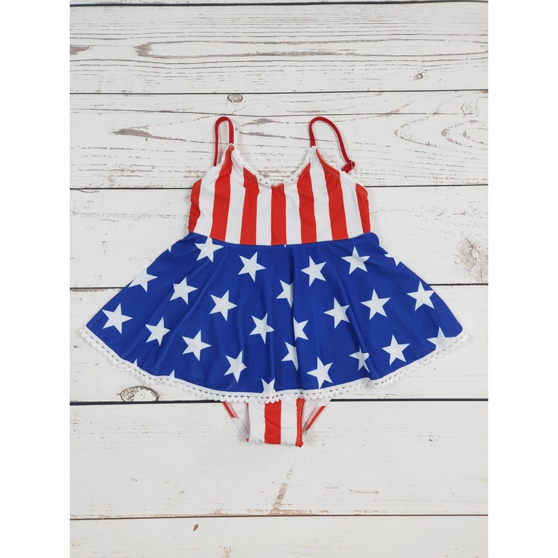 Stars Stripe Patriotic One Piece Girls Swimsuit ETA: 8-10 Days Gear up for summer days in style with the Stars Stripe Patriotic One Piece Girls Swimsuit, arriving at your doorstep in just 8-10 days. Made with high-quality materials, this swimsuit offers du