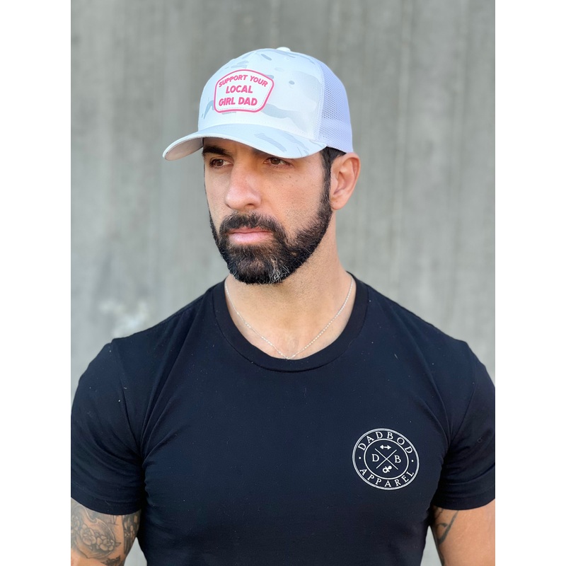 Our Support Your Local Girl Dad collection has quickly become one of our best selling collections. We decided to add some new PVC Rubber patch hats to the collection that are sure to be a staple in your hat collection and a guaranteed conversation starter anywhere you go. This multicam white snapback trucker hat is a clean and guaranteed head turner.
